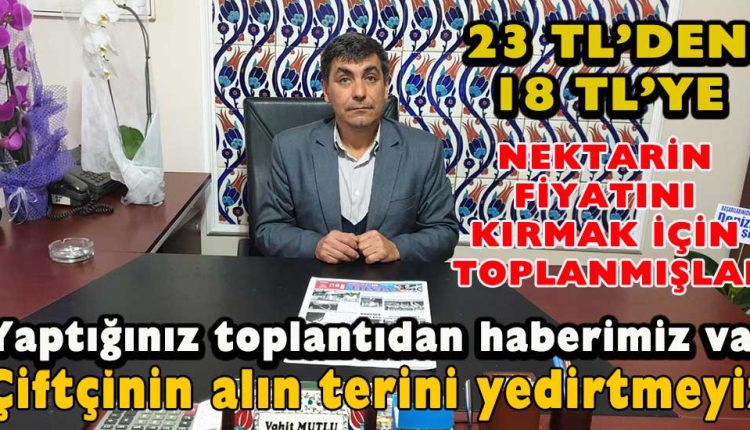 İznik Ziraat Odası Başkanı Vahit Mutlu ihracata şeftali olan tüccarların fiyatı kırmak için yaptıkları toplantıdan haberleri olduğunu belirterek “çiftçinin alın terini size yedirtmeyiz, 5 lira fiyat kırmak için anlaştığınızı biliyoruz ensenizdeyiz” dedi.