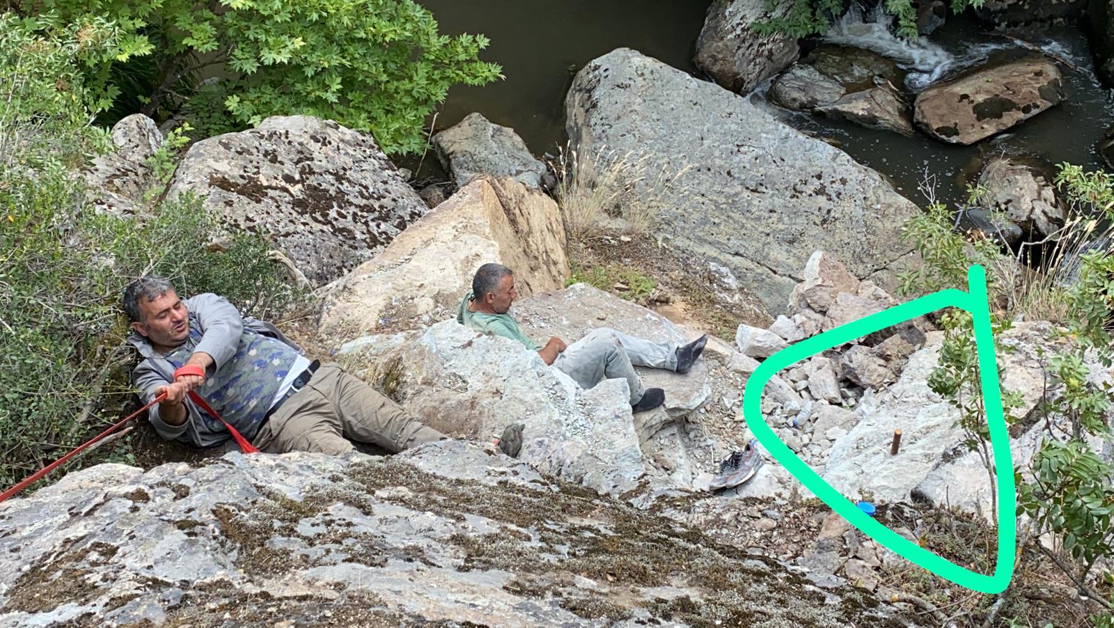 Tacir Kanyonunda define ararken dinamit patlatınca şelaleden düştükleri iddia edilen Osman Ak (45) ve İlhan Kaya (49) jandarma, arama kurtarma ve 112 ekipleri tarafından düştükleri yerden uzun uğraşlar sonucunda çıkarıldı.