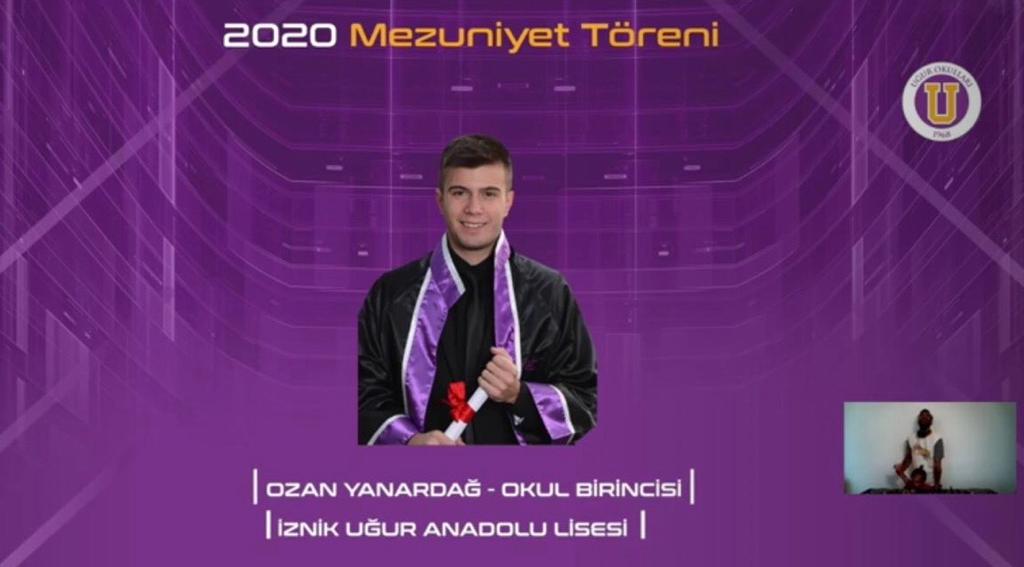 İznik Uğur Okulları Kurucusu Ahmet ÖZDEMİR, Uğur Okulları 2019-2020 eğitim öğretim yılı 12. sınıf öğrencilerinin pandemi süreci nedeniyle online olarak gerçekleşen törenle mezun olduklarını belirtti. İznik Uğur Anadolu Lisesi Okul Birincisi Ozan YANARDAĞ’ı ve ailesini tebrik etti ve öğrencimize başarılarının devamını diledi.