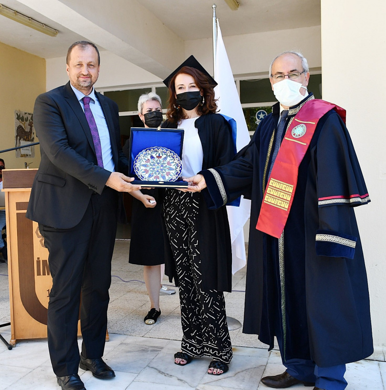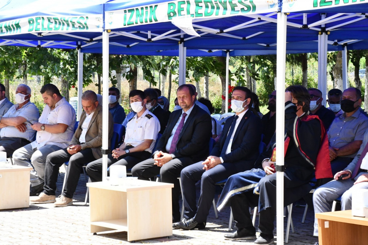 BUÜ Rektörü Yardımcısı Prof. Dr. Ferudun Yılmaz da yüz yüze mezuniyet töreni yapan üç meslek yüksekokulundan birinin İznik Meslek Yüksekokulu olduğunu belirterek, Üniversitenin her alanda eğitim kalitesini yükseltebilmek için çalıştıklarını vurguladı. Daha sonra konuşma yapan Yüksekokulu Müdürü Prof. Dr. Hasan Basri Öcalan; “Altı yıldır İznik’te görev yapıyorum. İznik tarihi bir şehir. Burada severek çalışıyorum. Eşrefzade Abdullah Rumi, Davud-i Kayser’i, Sarı Saltuk ve Abdulvahap Gazi gibi ilim erbabının türbeleri İznik’te yer alıyor. İznik ayrıca çini sanatının da merkezi kabul ediliyor. Yüksekokul olarak, çiniciliği yaşatmak için çalışmalar yürütüyoruz” dedi. Pandemi sürecinde yüz yüze eğitim yapılamadığını belirten Öcalan, mezuniyet törenine katılan kamu kurum ve kuruluşlara teşekkür etti. Protokol konuşmalarının ardından dereceye giren öğrencilere ödülleri ve mezuniyet anı belgeleri verildi.