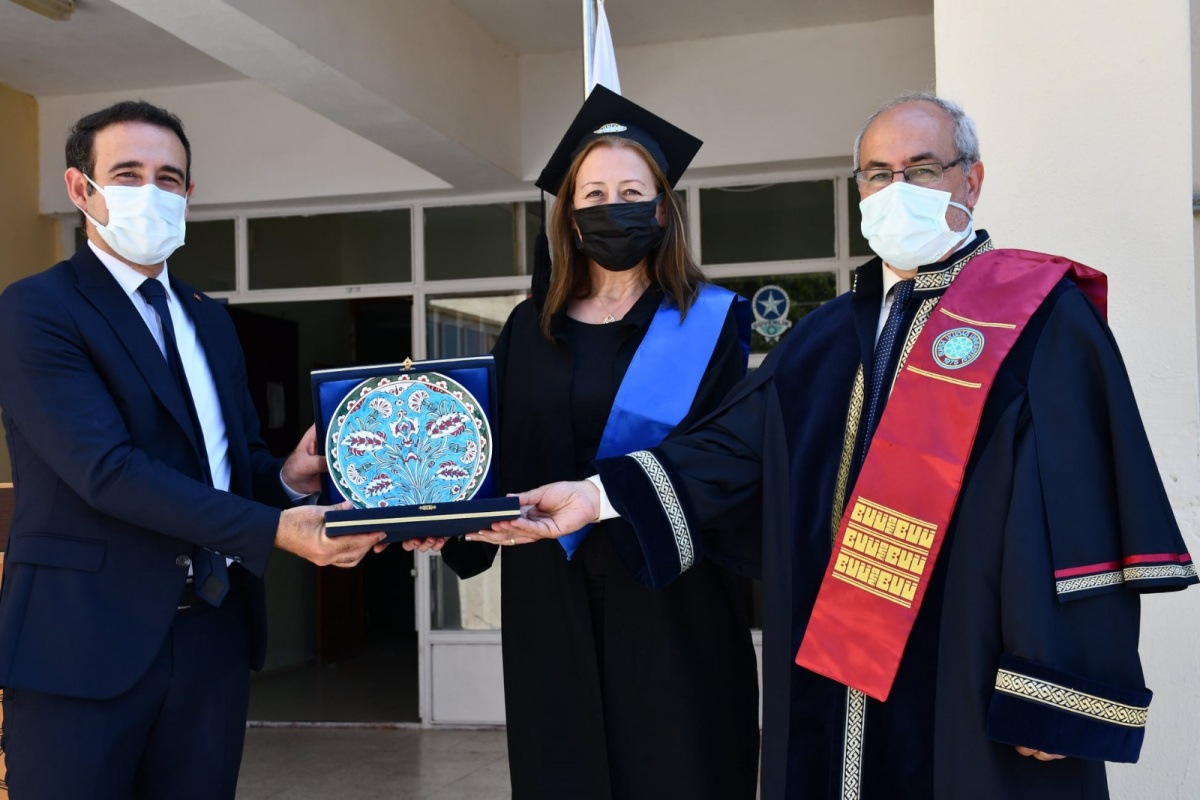 Saygı duruşu ve İstiklal Marşından sonra, mezun öğrenciler adına, okul birincisi Seramik Cam ve Çinicilik Programı öğrencisi Tülay Koyuncu; “Hayalimiz siz çok kıymetli hocalarımız ile yüz yüze ders yapmak iken Covid-19 salgını nedeniyle eğitim göremediklerini, bu süreçte, atölyede yalnız başına videolar çeken, kamera karşısında her türlü desteğini esirgemeyen değerli hocalarıma teşekkür ederim. ” dedi.