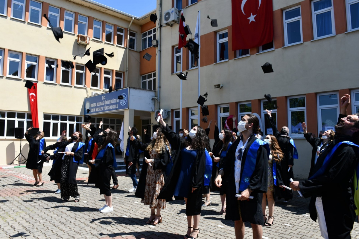 İznik MYO’da mezuniyet coşkusuBursa Uludağ Üniversitesi (BUÜ) İznik Meslek Yüksekokulu, diploma almaya hak kazanan öğrenciler için mezuniyet töreni düzenledi. Öğrenciler, pandemi sürecinin ardından hep birlikte kep fırlatmanın sevincini yaşadı.