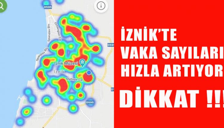 Türkiye genelinde her geçen gün vaka sayılarının rekor seviyelere ulaşmasından sonra kırmızı kategorideki şehirlerde hafta sonları sokağa çıkma kısıtlaması uygulaması sonrasında İznik’ te de vaka sayılarında ciddi bir yükseliş söz konusu. Yaklaşık 2 ay önce tamamen yeşile dönen İznik haritası bugünlerde tüm bölgelerde kızıla dönmeye başladı. Öteki taraftan ilçedeki günlük vaka sayılarının da her geçen gün arttığı, hastaneye başvuran vaka sayılarının da yükseldiği gözleniyor.