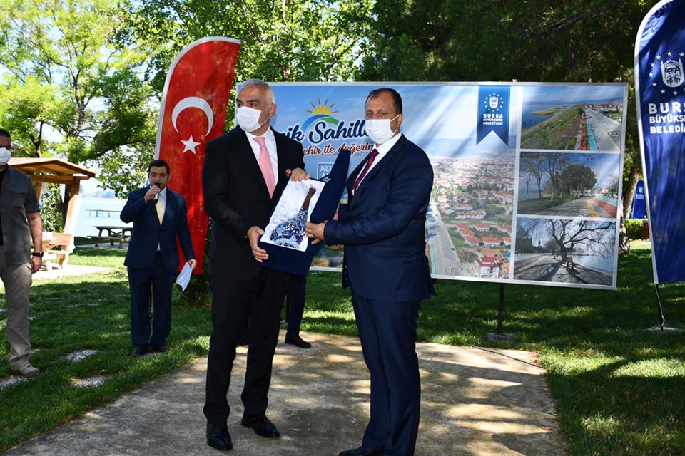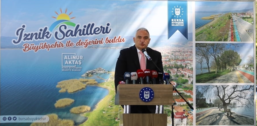 Kültür ve Turizm Bakanı Mehmet Nuri Ersoy da Bakanlık olarak gerek kültür gerek turizm başlığı altında olsun kentlerin markalaşmasını sağlamak ve bunu özgün kimliği koruyarak gerçekleştirmeye öncelik verdiklerini söyledi. Modern şehirlerin en önemli ihtiyaçlarının başında hayatın insanların üzerine yüklediği stres, telaş ve koşuşturmaya bir soluklanma fırsatı sunacak, zahmetsizce ulaşılabilecek sosyal ve fiziki imkânlara alanların geldiğini dile getiren Ersoy, “İznik tarihi kıyı bandı restorasyon ve çevre düzenlemesi projesini bu bağlamda değerlendiriyor ve çok önemli buluyorum. Başarılı bir çalışma gerçekleştiğini görüyoruz. Halkımıza fiziki imkanları ile önemi bir yaşam alanı kazandırmış olduk. Başta Büyükşehir Belediyesi olmak üzere emeği geçen herkese teşekkür ediyorum. Bugün buraya bir müze açılışı geldim ama başka bir müzenin daha müjdesini vereyim. İznik Arkeoloji Müzesi’nin proje çalışmalarını bu ay içinde bitireceğiz. İnşallah Eylül ayında temelini atıp, 2021 Eylül ayına onu da yetiştireceğiz” diye konuştu.