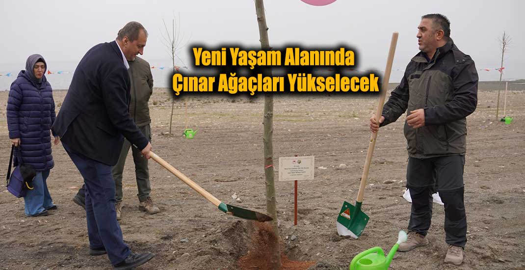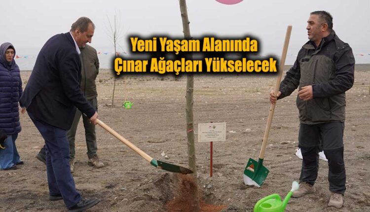 Etkinlikte ilk etapta 200 adet çınar ağacı toprakla buluşturulurken, dikilen her fidana protokol