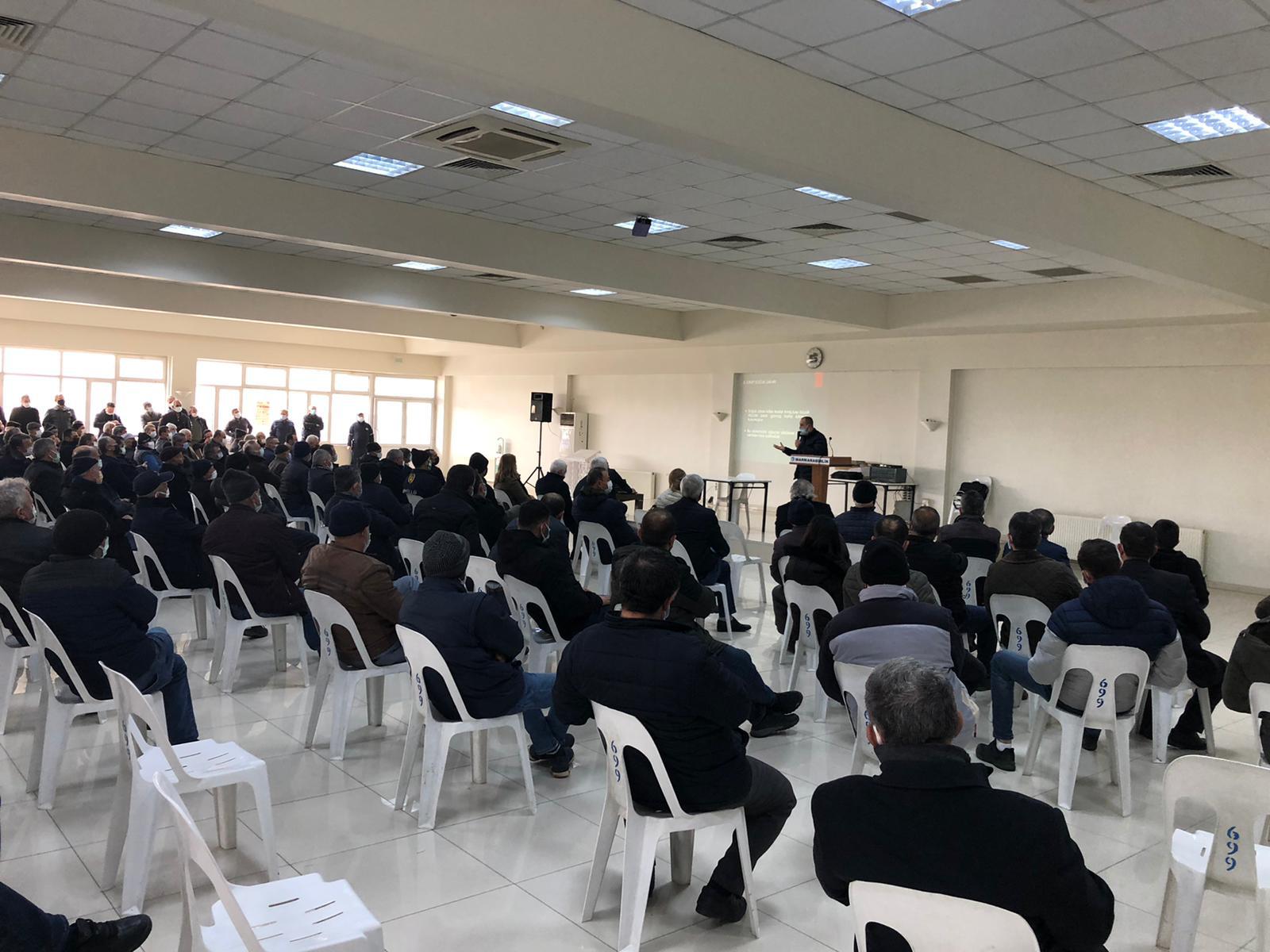 İl Müdürlüğünün konu ile ilgili uzmanları ve İzmir Bornova Zeytincilik Araştırma Enstitüsü uzmanları, zarar gören bölgelerde don zararının etkisini azaltmak amacıyla zeytin bahçelerinde yapılması gereken bakım işleri ile ilgili olarak zeytin üreticilerine eğitim verdi. Dr. Tülin Pekcan, Dr. Nuray Körükmez, Ziraat Yüksek Mühendisi Özgür Dursun, Tarım İl Müdürlüğü’nden bitki koruma şube müdürü Ömer Doğan, üreticilere don nedeniyle yaşanan mağduriyetin giderilmesi konusunda yapılacak çalışmaları ve yine bu tür durumlarda üreticinin izleyeceği süreç hakkında detaylı bilgilendirme yaptı. Marmarabirlik Yönetim Kurulu Başkanı Hidamet Asa, İznik Zeytin Tarım Satış Kooperatifi Başkanı Ali Bulut ve Yönetim Kurulu ile Tarım İl Müdürlüğü’nden Lütfü Akbaş, İznik Tarım İlçe Müdürü Osman Yorulmaz, Ziraat Odası Başkanı Vahit Mutlu’nun da katıldığı eğitim toplantılarına üreticiler de yoğun ilgi gösterdi. Fakat Pandemi kuralları nedeni ile salona sınırlı sayıda katılımcı alınırken maske ve mesafe kurallarına da üst seviyede özen gösterildi.